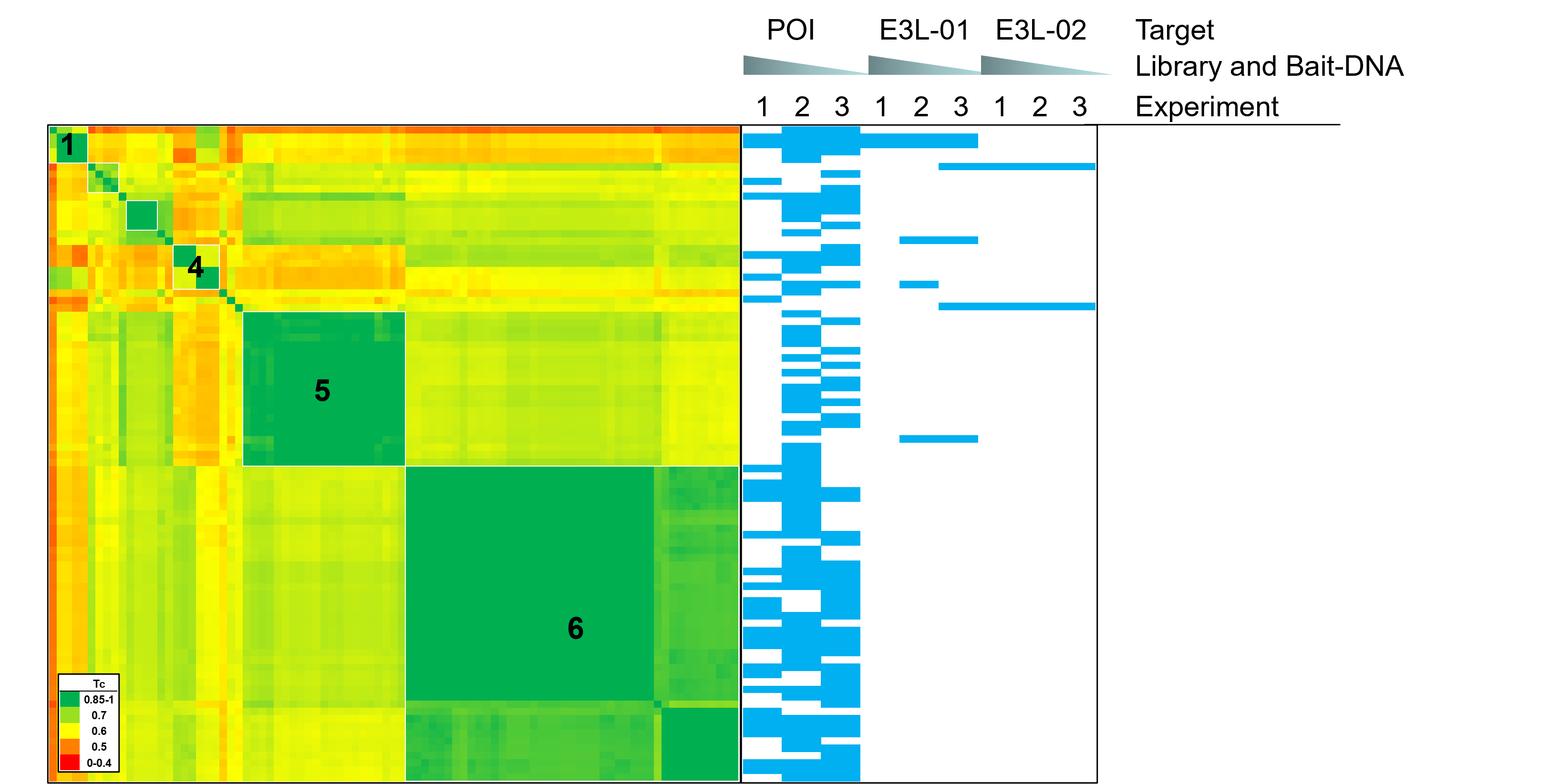 - Cluster 1 and 4 contain hits shared between the POI and E3L-01