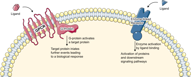 Figure 1: Overview of cell-membrane receptors G protein-coupled receptors (GPCRs) and Enzyme-linked receptors.